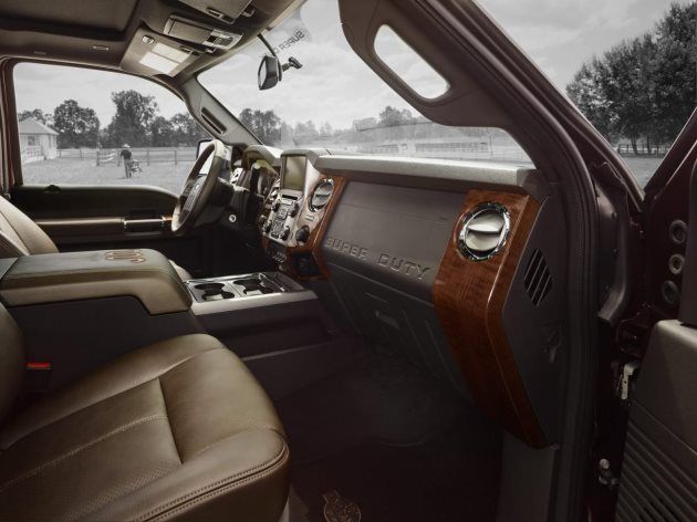 Кроме того, Ford предлагает американским покупателям особую серию F-Series King Ranch, названную в честь гигантской фермы в Техасе. Ее кожано-деревянный интерьер выполнен в духе Дикого Запада, а подголовники кресел украшены знаком, которым раньше клеймили скот этого ранчо.