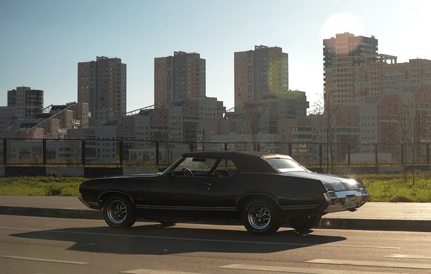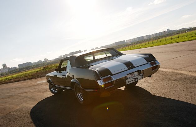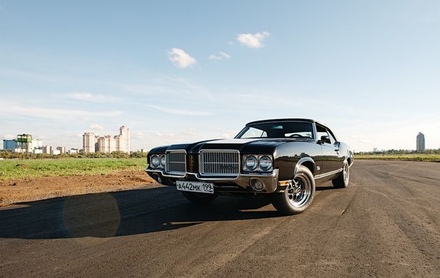 В этот день на взлётной полосе тушинского аэродрома мы несколько часов мучили BMW M3. Десятки «весёлых стартов» по взлётной полосе с разгоном до сотни за пять с небольшим секунд, экстренные торможения и испытания на максимальные поперечные ускорения — достаточный набор упражнений, чтобы вестибулярный аппарат уже ничему не удивлялся. Но тут подъехал он, Oldsmobile Cutlass Supreme 1971 года.