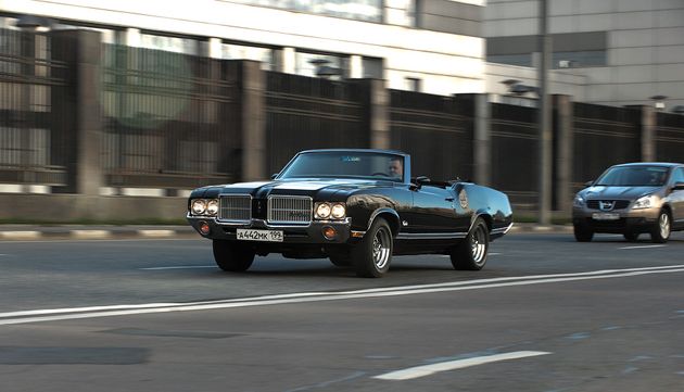 Если проводить аналогии между автомобилями и атлетикой, то езда на масл-каре — это метание молота. Куда точно попадёт снаряд — Зевс его знает. Главное — чтобы полетел далеко. Oldsmobile Cutlass тоже безумно сильный, жрёт в городе больше 40 литров и управляется едва-едва. Отлично! Разгоняться на нём быстро надо на прямиках, а по городу кататься спокойно. К тому же, это совсем не напрягает: у машины есть усилитель руля и тормозов, электростеклоподъёмники, кондиционер, и даже крыша складывается при помощи сервоприводов за вполне современный норматив в 20 секунд. 1971 год!