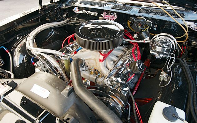 Но вернёмся к машине. Убитые мотор (5,7 литра) с коробкой было решено отправить на пенсию, а вместо них из Америки выписали двигатель объёмом 455 кубиков (7,5 литра) и трёхдиапазонный «автомат». Мотор строился в Штатах специально для этой машины. На стенде с колёс было снято около 300 сил — значит, реальная мощность составляет около 400. А как он звучит!
