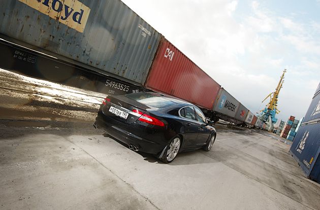 А вот в поворотах Ягуар ощущается весящим намного меньше, чем есть на самом деле, хотя XFR всего на 1 (!) килограмм легче крупного «алюминиевого» седана XJ с таким же двигателем. На руль в виражах приходит вся необходимая информация, которая позволяет понимать, что происходит с колёсами. Система стабилизации даёт похулиганить, при этом нежно корректируя заносы, и тем самым вселяет уверенность в своём всесилии. Настолько, что невольно начинаешь ехать, размашисто закидывая «хвост» газом, веселя и пугая пассажиров (О-о-о, он такой классный водитель!)