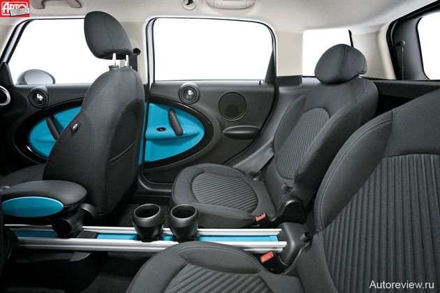 Да, Countryman — это даже не Clubman: впервые, садясь в Mini, я открываю полноценную заднюю дверь и легко устраиваюсь в отдельном кресле. «Селянин» — первый Mini длиной более четырех метров (4110 мм), а колесная база по сравнению с Клабменом растянута на 48 мм — до 2595 мм. Поэтому места сзади с запасом — и над головой, и перед коленями. Единственное неудобство — это ступенька с воздуховодами под передними креслами, из-за которой ногам задних пассажиров под ними тесновато. А особенно понравилась идея с рельсом, разделяющим пару задних кресел, — на него можно установить что угодно — от подставок-корзиночек до развлекательных мониторов с нетбуками. Нечто подобное, кстати, есть и в новом компактвэне Opel Meriva. Да и сами кресла что надо — с выверенным профилем и многоступенчатой регулировкой угла наклона спинки. Можно заказать и обычный трехместный диван, но это уже неприкольно.