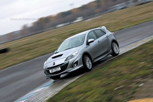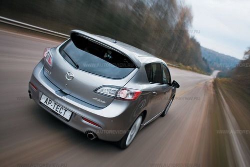 Теперь у «горячей» Мазды сразу два шильдика «MPS», широкая ноздря воздухозаборника и массивное антикрыло