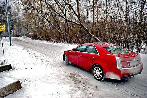 Мне повезло, я забрал CTS аккурат в тот день, когда повалил снег. Свежий, рыхлый, - он так хорошо ложится на дорогу. И именно его так ненавидят водители. Мой Cadillac был укомплектован полным приводом (неотключаемым) и был переобут в зимнюю шипованную резину. Так что особого страха от заснеженной дороги не было, только легкий трепет. 3,6-литровый мотор, который ставят на CTS, имеет мощность 307 л.с. При весе в 1620 кг ему этого вполне достаточно. Поэтому дозировать газ приходилось аккуратно и внимательно. Стоит дать лишку, и корма автомобиля легко уходит с траектории, но также легко на нее возвращается. GM говорит, что это все магическая StabiliTrak. Система динамической стабилизации. Верю.