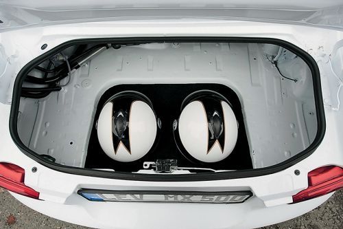 Пятиточечный ремень безопасности не дает вздохнуть полной грудью. Для запуска мотора надо поднять два авиационных тумблера и затем нажать кнопку. Спортивный рык заставляет сработать сигнализации припаркованных рядом машин. Поехали! Единственное зеркало заднего вида находится по центру. Роль отражающего элемента выполняет полированный алюминий. Стильное решение, но следить по нему за дорожной обстановкой все равно что смотреться в самовар. Под капотом установлен стандартный 1,8-литровый двигатель. Привыкать к родстеру не пришлось. Инженеры хоть и выкинули из машины множество привычных атрибутов, но все необходимое для увлекательного путешествия оставили на привычных местах. Стандартный щиток приборов неплохо сочетается с новыми кожаными креслами и дизайнерским подлокотником. Роль музыкальной системы выполняет встроенный iPod. В движении поражает отзывчивость и послушность концепт-кара. Спортивная подвеска и сниженный вес превратили автомобиль в карт. Мотор мгновенно раскручивает короткие передачи до красной зоны. Кажется, что мчишься не медленнее 150 км/ч, но спидометр упрямо оставался на отметке «100». Никуда не денешься — субъективные ощущения. И это понятно, когда в лицо бьет поток прохладного воздуха, отчего хочется не просто петь, а орать, распугивая многочисленную фауну Альп.