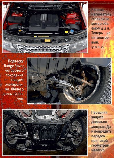 Теперь все по-другому. Начнем с того, что в Range Rover четвертого поколения нагнетателем снабжен пятилитровый мотор. И он обставит всех. Гигантский объем плюс нагнетатель делают возможными любые фантазии. Сил у него так много, что единственное, о чем стоит беспокоиться, – как бы не пережать педаль. Но и это не страшно. Поскольку вся неимоверная лошадиная английская дурь теперь находится под грамотным управлением электроники. Может, новую программу для противобуксовочной системы написали смуглые дрессировщики слонов, ведь они лучшие программисты в мире после российских?