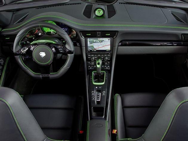 Среди прочих доработок для новой «Карреры» можно отметить колесные диски диаметром 20 или 21 дюйм, а также стайлинг салона, выполненный из кожи и алькантары с контрастной зеленой строчкой в цвет кузова.