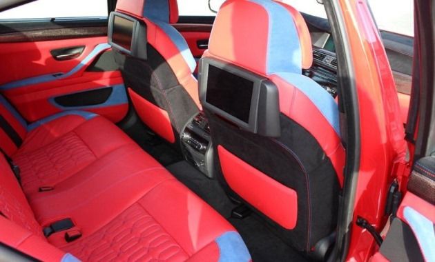 Салон перешит с использованием красной и светло-синей кожи, а также алькантары. Кроме того, в декоре появилось множество элементов из карбона и два монитора в спинках передних кресел. О технических доработках ничего не сообщается.