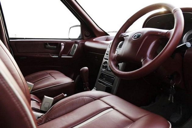 Салон индийского внедорожника мастера тюнинга обшили красной кожей.